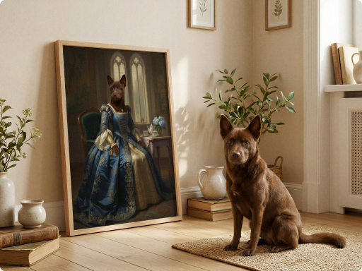This is more than just a portrait; it's a timeless keepsake. This delightful blend of classical elegance and contemporary humor makes it a perfect, heartfelt gift for any art lover or a touching tribute to the pet who reigns supreme in your home.